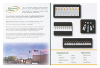 The right panel's exterior lists processes and metals under photos showing electroplating equipment. The left panel's giant info flap is condensed on the center pocket for those who want a short read.