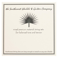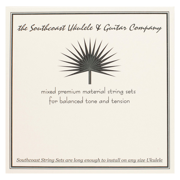 The Southcoast Ukulele & Guitar Company uses this tuck flap mailer envelope to ship sets of strings. Printed on Vanilla Vellum stock, the design features the company name and a flower in full bloom as the logo, with information about ukulele strings underneath.